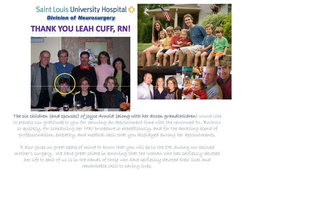 We thank all of you who have followed Joyce's story, prayed for her, and relayed your thoughts and memories.